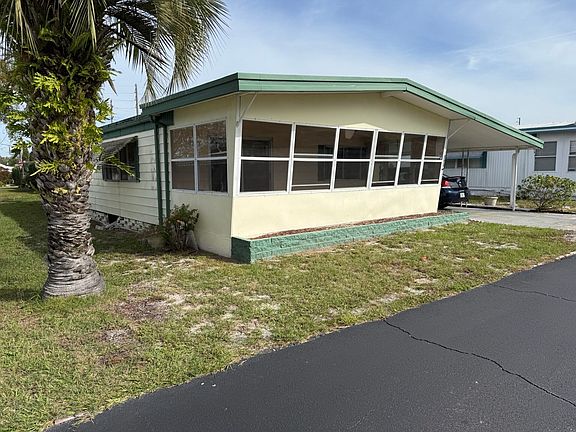Very clean and spacious 2 bedroom manufactured home. Plenty of cabinet space in the kitchen, along with a dining room with a built in hutch and mirrors, sliding patio doors in the living room open out to the front screened room. Sleep comfortably in the large master bedroom in suite. Ceiling fans throughout the home help keep you cool year round. A large storage room with washer & dryer hookups along with a good HVAC makes this home more than worth the price! Schedule your visit before this home is off the market!