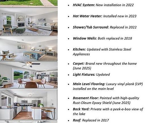 Brighten your lifestyle with this beautifully updated townhome offering 3 bedrooms and 1.5 baths. From the moment you step inside, you’ll appreciate the thoughtful upgrades and inviting charm throughout. This lovely home features: an updated kitchen with modern cabinets and a built-in dishwasher, brand new carpet throughout, updated light fixtures, fresh interior paint and a cozy gas fireplace. The partially finished basement—perfect for extra living space or storage. A private backyard with a peek-a-boo view of the lake plus, a newer HVAC system (2022) and sliding glass door for added comfort and energy efficiency. Best of all, you’re just a short walk to the lake! Community amenities include: A clubhouse, swimming pool, tennis court, golf course, fitness center, and more—everything you need to relax, stay active, and enjoy the lake lifestyle. Don't miss your chance to own this charming and comfortable home. Schedule your private showing today!