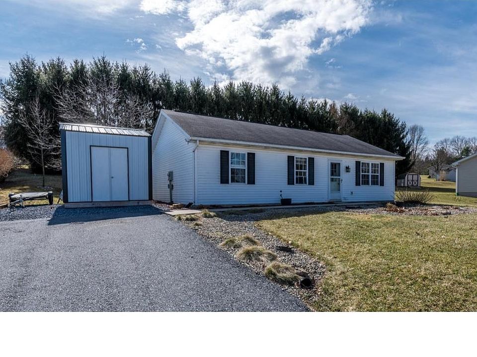 Well suited for ease of living, this desirable ranch home offers peak-a-boo views of Fawn Lake from the front, as well as inviting backyard living space. Perfect down-sizer or starter where kitchen, living room, laundry, 3 bedrooms and 1 bathroom are all conveniently located on one level. Updates scattered throughout; newer bathroom and rustic wooden backsplash in kitchen. Bedrooms, kitchen and living room have recently been professionally painted for a fresh look! Outdoor space adorned with cherry, apple and peach trees which all bear fruit, as well as fire-pit and pergola. One large and one small shed remain, ensuring plenty of storage space for your extras. Lake Wynonah is a gated lake community, featuring 2 gorgeous, clean freshwater lakes. Amenities include: lodge w/dining and bar, social clubs, boating, fishing, wakeboarding, waterskiing, tubing, paddleboarding, tennis, pickleball, several parks, beautiful docks and marina.