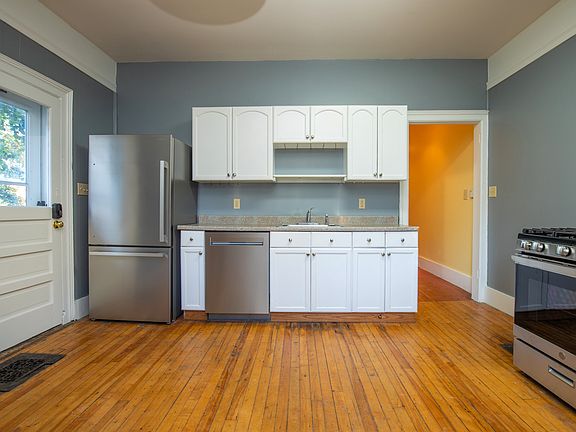 Charming 1st floor of a late 20th century house in the Hill Section of Burlington. This bright and spacious apartment includes a large, private, covered porch on the front of the house, secondary porch on the rear, off street parking and a yard/gardening space in the rear. Snow removal, trash/recycling, and water are all included. Heating is accomplished via a natural gas forced air system and an efficient through wall Rinnai unit located in the apartment. Laundry is on sight and located in the shared basement where an additional 1500sqft of storage space exists with easy and secure access from the apartment or the parking lot in the back, making bike storage a breeze. Brand new stainless steel fridge, GE stainless steel oven and dish washer, new paint throughout, a new bathroom sink vanity and light fixtures. This 3 bedroom, 2 bath apartment boasts high ceilings, ample storage space, a bright bonus art/studio room, built in shelving throughout the house, and easy, remote access Schlage locks for piece of mind and convenience. Located in a safe, quiet neighborhood with ample street parking, you're just a 15min walk from downtown Burlington. Views of nearby Lake Champlain from the back porch. Enjoy access to the arts district, Farmers Market, Food Truck Friday's, restaurants and more at the bottom of Howard Street. Calahan Park, a bustling sports and recreation hub, is just a short walk away. Open to discussions concerning pets in the apartment.