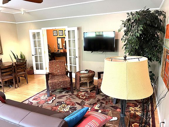 Spacious home with attached apartment which could be a nice in-law quarters, guest quarters or rental. Furnishings in attached apartment will convey. Current owner has rented it for $700/mth and used it as a successful VRBO rental for several years. The apartment is also handicap accessible. This home was built in 1993 and features 2557 sq/ft plus an attached garage. Off the dining room of the main home is a nice, covered porch. The guest apartment has a large deck with a walkway leading to a storage building. There's a small storm shelter under the house (it will need a door). Home is located a few miles north of town in a quiet development. It's well maintained and move in ready.