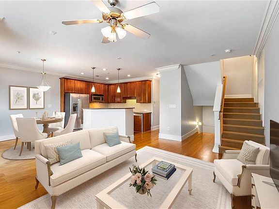 Discover the perfect blend of style, comfort, and convenience in this beautifully updated townhouse. Ideally situated in a highly sought-after neighborhood of Sandy Springs, this home offers easy access to shops, restaurants, parks, City Springs and Performing Arts Center and major commuter routes—everything you need is right at your doorstep. Step inside to find a bright, open layout with fresh finishes, high ceilings and gleaming hardwood floors throughout. The updated kitchen has custom cabinets, granite countertops, large pantry and a separate bar with a second sink. Spacious fireside living and dining areas flow seamlessly to a private balcony with beautiful views—ideal for relaxing or hosting friends. Main floor boasts an additional spacious second living space perfect for an office and additional sitting area. Upstairs, you’ll find a generously sized serene primary suite with a large renovated private bath and walk in closet. Two additional bedrooms with large windows overlooking the trees with a shared updated bath. Additional highlights is a spacious one car garage with a second driveway parking space. The community is beautifully landscaped with nice shared spaces and plenty of guest parking. With its prime location, thoughtful updates, and inviting atmosphere, this townhouse is a rare find you won’t want to miss.