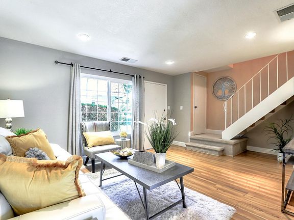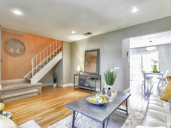 Welcome to this bright & cozy townhouse-style condo in Blossom Valley. This home features 2BR/1.5BA, 950+/- SQ FT with in-house washer/dryer, central A/C, remodeled kitchen and 2 car designated parking directly behind fenced patio. New dishwasher, remodeled kitchen with granite counter top, stainless steel appliances. Half bath downstairs. Recessed lighting throughout. Dual pane windows. Newer furnace (installed in May). Laminated flooring on 1st level. Bright eating area in kitchen looking out nicely paved patio. Extra storage in parking area. Move-in condition! All appliances stay with the property. Monthly HOA includes water.