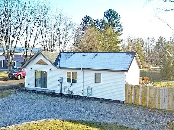 Welcome to your new home! As you enter through the ample sized mudroom, to the left you will notice the laundry room with new, high tech, washer & dryer & the stairs leading to the extra deep crawl space, used for storage & utilities. To the right, three steps lead you to the recently remodeled kitchen, which pairs classic natural materials with modern touches that everyone will appreciate. The home flows, with an open concept, into the dining & living room. There are two warm inviting bedrooms & a full bathroom with large vanity. The combined kitchen, dining, living areas feature hardwood floors & the whole home features knotty pine vaulted ceilings, giving this cozy cottage a grand & spacious feel! The garage also has alot of options to offer, with a large carport out front of the deep garage (with new mini-split) & a bonus room on the backside with separate entrance & attic storage. The back yard features a large cement patio & a firepit. Small town living, easy commute! A MUST SEE!