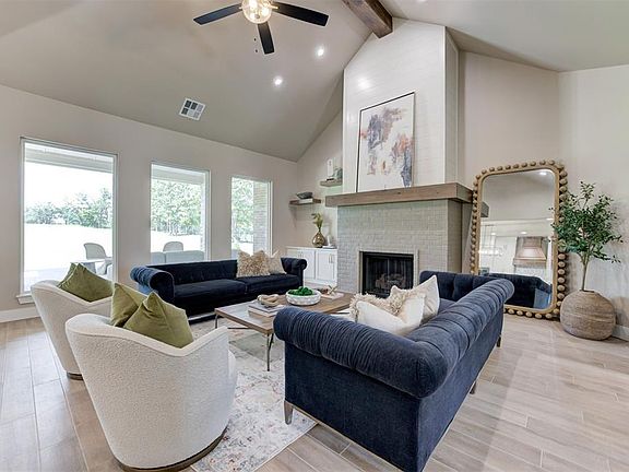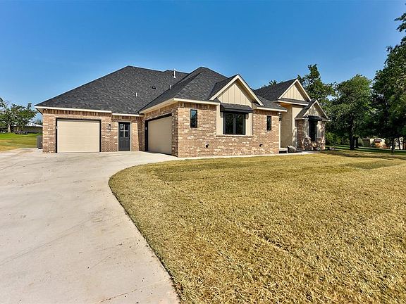 ASK ABOUT BUILDER INCENTIVES! This 4-bedroom, 2 1/2-bath residence sits on sprawling 3/4 acre lot in one of Harrah's premier gated communities. Offering a blend of style and design both inside and out, evident upon pulling into the driveway where you'll be greeted by the exterior's blend of brick, stucco and siding. Once inside, you'll be greeted with an office which is a vision of inspiration, featuring glass walls and a door that floods the space with natural light, fostering creativity and productivity. The cathedral ceiling, fireplace with shiplap and brick design accompany the natural light from the large windows and open floorplan. Enjoy the space and design of the kitchen's under cabinet accent lighting, under counter lighting and a beautiful 5 burner cooktop. The dining room boasts a buffet cabinet with accent lighting, setting the perfect mood for shared meals and unforgettable gatherings. Privacy and relaxation await in the split-plan layout, providing tranquil spaces for every member of the household. The primary suite starts with a large bedroom with patio access, a free-standing tub with clean lines, marble look shower walls, under counter lighting. The spacious closet, that also connects to the laundry room, has enough space for any wardrobe. Guest can easily step away from the living area and access the powder bathroom with its custom wallpaper, custom tile accent wall and mirror, as well as custom painted cabinet. The secondary bedrooms share a jack and jill bathroom with their own sink areas, and one even has a built-in desk space. Step outside onto the sprawling back porch, an entertainer's paradise, where outdoor enjoyment meets refined comfort. The 4-car garage, with an oversized 2 car, as well as a 2-car tandem, give you options and the ability to park multiple cars or even have a workshop. This one-of-a-kind home is ready for it's new owners.