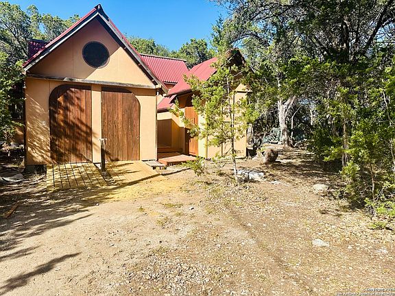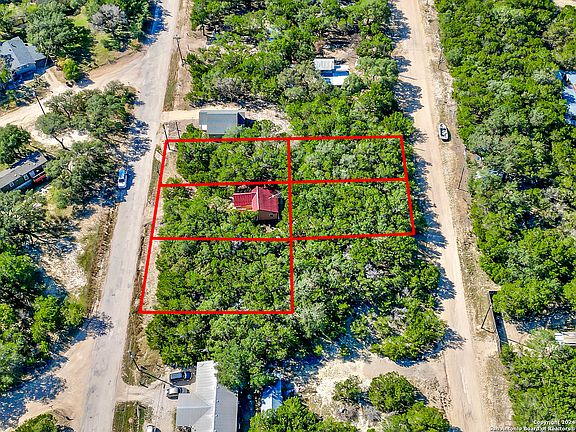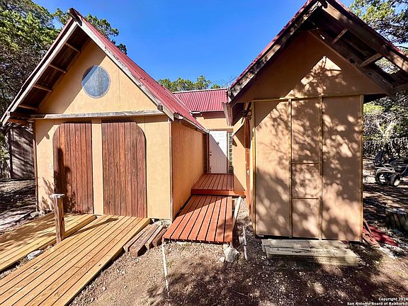 Cute Cabin surrounded by heavily wooded trees create a sense of privacy and tranquility. Plenty of shade during those hot, summer days. Incredible find! 5 lots, including the lot with cabin are SOLD TOGETHER and AS IS. All 5 lots total approximately .575 of an acre - plenty of room to build your dream home or occupy the dwelling. Cabin is studio style. Attic has space to finish for loft. There is a kitchenette, and a refrigerator that conveys. Cabin has a 2 (motorcycle) parking spaces with ramps. The attached garage has access to main home. Big Shed on grounds for storage. Septic in place.
