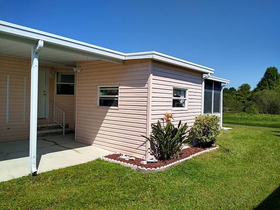 Great opportunity! Perched on Palm Lake in The Gardens is a truly spacious home at 1456 SF! Open concept.. kitchen, dining room and large living area all in ONE room with a wonderful view of the lake and tree covered island... a gathering spot for your many wildlife neighbors! 2 bedrooms 2 bath, partially furnished, nice and bright! Wide halls and entry way give a homey feel. Large utility room adds an abundance of storage. Good size master will accommodate a king size bed easily, has a walk-in closet and huge en suite. Relax and sip your coffee in the morning in the 12'x15' Lanai with screen & vinyl windows where the sun rises in the morning, and sets on the other side of the house... to enjoy the yard and patio after dinner. Our neighbor, and also known as a superhero... enjoyed this prime location in the most sought-after 55+ community in the area for many years! The Gardens is an active and friendly community where your pets are welcome too. (1 Dog, 2 cats) Amenities include Olympic-sized swimming pool, sun deck, hot tub, state-of-the-art Fitness Center, tennis, pickleball , shuffle board. The Resort-style Clubhouse hosts dinners, entertainment, events and activities! Now this is Florida living! Shopping and Dining nearby. Just a short drive to interstates, pristine Gulf Coast beaches and attractions. Lot rent $768 includes all amenities, lawn mowing and Edging PLUS high speed Internet and cable!