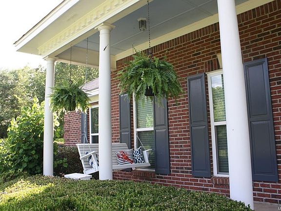 Stunning and sophisticated describe this country home on approximately 3 acres. A wide walkway bordered with bricks leads up to the wide front porch to the stately front entrance featuring sidelights, and a half oval window over the front door. The large foyer has tile floor and opens up to the formal living room with columns and crown and dental molding. This 4 bedroom home has tile and wood flooring throughout. The living room flows into the formal dining room through columns, that's roomy for big family gatherings. The spacious kitchen has a breakfast bar and a multitude of cabinet and storage space! The wood cabinetry includes a built in "bread box" and glass front cabinets! In the gathering area, open to the kitchen, there is a huge built in side board with even more cabinets and a built in desk! Windows surround the breakfast area with a designer copper light fixture over the table area. The great room has a gas log fireplace with a pretty mantle and surrounded by tile. The Master suite boasts a box ceiling, big walk in closet with shelving, a jetted garden tub, double vanity with a glass shower. Walk outside and entertain under the covered porch and pergola over brick pagers leading to a luscious water feature and more patio area with rock pavers. There is a garden area, workshop and a walkway leading to an outdoor sitting area among the tall oak trees! You will love the outdoor space around this beautiful home with the country feel but close to I-65, shopping, Maxwell AFB and Championship Golfing!