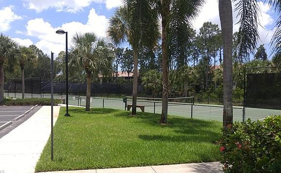 LOWERED PRICE , PRICED TO SELL this 2nd floor 2 bedroom 2 bath with detached garage has new, less than 2 yr old updated kitchen with custom cabinets, beautiful Brazilian Granite countertops, glass tile backsplash , Porcelain tile floor, vaulted ceilings, and slate GE appliances. a Less than 2 yr old Lennox AC System and water heater. Brand new automatic garage opener and Brand new dryer. Second floor screened in balcony overlooks pond with fountain, wooded area, is directly across from the clubhouse and pool. Minutes away from shopping and our beautiful beaches.This community has a clubhouse, tennis courts, pickle ball court, 2 pools to enjoy, and is conveniently located next to shops, gas, medical offices, restaurant's and I-75. Sherwood is a Naples hidden gem.