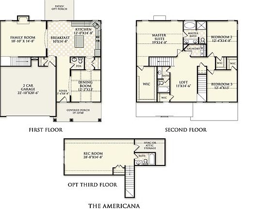 The Americana 2522, retro styling takes you back to a simpler time. The covered porch will welcome guests. Step into the foyer of this spacious home. The formal dining room with coffered ceiling will impress. The roomy kitchen with island and breakfast nook will delight the fussiest of cooks. Entertaining is a breeze with the family room with fireplace that opens from the kitchen and nook area. The patio is just off the breakfast nook. The powder room is off the foyer hall.