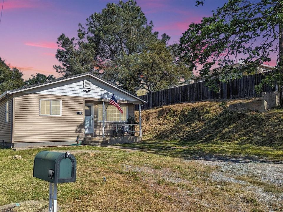 Nestled in downtown Valley Springs, this inviting 2-bedroom, 1-bathroom home offers a combination of convenience and charm. Step inside to find a move-in ready interior featuring beautiful hardwood flooring in the main living area and guest bedrooms. The kitchen features an abundance of cabinetry, with a refrigerator included for added convenience. Luxury vinyl flooring in the kitchen, dining area, and bathroom adds a touch of contemporary style, while central heating and air conditioning ensure year-round comfort. Outside, the fenced backyard area provides an enclosed area for outdoor enjoyment. Shade from native oak trees enhances the ambiance of the large, usable lot, while ample parking space adds practicality to everyday living. One of the standout features of this property is the Owned Solar System, offering energy efficiency and cost savings! A storage/bonus shed in the back comes complete with laundry hook-ups with the washer and dryer also included for convenience. Fresh interior paint gives the home a modern, refreshed look, while a concrete back porch and covered front deck offer perfect spots for relaxation. Located near amenities, restaurants, shopping, transportation, and schools. Come see for yourself and Love where you Live!