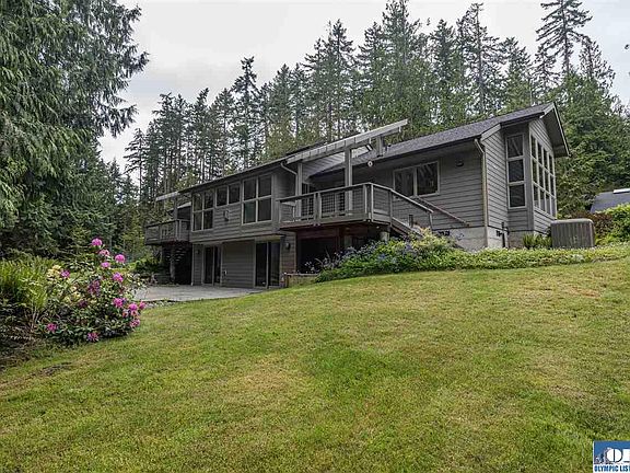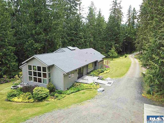 Looking for Privacy? Quality construction, architect-owner designed, custom-built in 2007, 2490 sq ft home plus 1200 sq ft 4 bay garage on 7-acres of mature trees & lush landscaping. Vaulted ceilings in stunning Living/Formal Dining/Kitchen Great Room as well as Family/Den/2nd Dining. Skylights & walls of windows bring the sunshine in. Daylight Basement w/2 sets of sliding glass doors to inviting patio, perfect for Rec/Game Room, in-home business, or guests. 3 RV hook-up stations w/Power, Water & Septic. 400 ft fenced in side yard. Cedar 5 ft. 2 gates. Generac 24kw backup generator