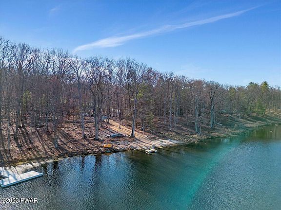 Beautiful, landscaped lakefront lot with dock on powerboating lake in Fawn Lake Forest. Community is close to skiing, Lake Wallenpaupack, Delaware River and ATVs are allowed!