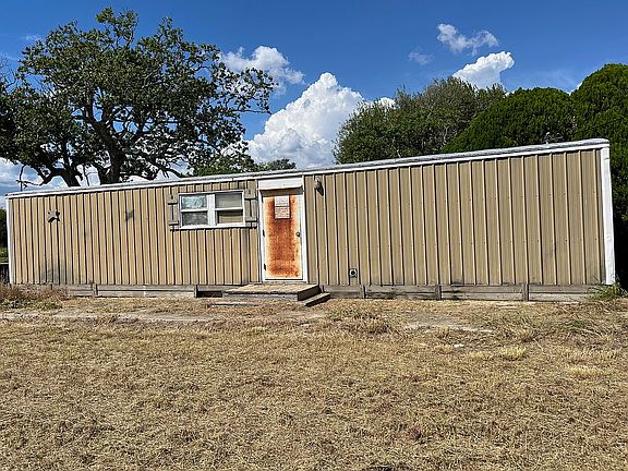 Very strong metal building used in the oil field for offices. Was previously occupied by a family. 2 bedrooms and 2 baths. We were in the process for internal remodel but we are selling instead. Please see pictures. Everything worked prior to electrical disconnect; including air conditioner. Both bathrooms are plumbed to well and septic. .59 acres with fruiting pecan tree. 15 minutes to fishing and 25 minutes to Victoria Texas. Home is being sold as is--please review pictures. Washer and dryer electrical and plumbing all in place.