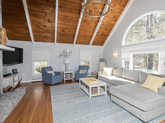 Rare private setting on a beautiful winding road in downtown Hamilton. This colonial sits up on a knoll on 1.51 acres. Enjoy the fabulous fenced yard with an ideally sited in-ground pool. The family room beside the kitchen has a dramatic vaulted ceiling, white washed brick chimney and a raised hearth, and fireplace. Expansive white kitchen with granite, dining area, breakfast bar, fireplace and sliders to the back deck. Details in the dining room include wainscoting, a bay window and updated lighting. Open the French doors to the screened porch from the front to back living room with the 3rd fireplace. First floor office with glass French doors off the front foyer. There is a 5th ensuite bedroom with separate stairway. Attached 2-car garage, mudroom with half bath, and 1st floor laundry with exterior access. Close to the commuter rail, shops, and restaurants. Near miles of trails, Crane beach, Audubon Sanctuary, Bradley Palmer State Park, Essex County Greenbelt properties and more.