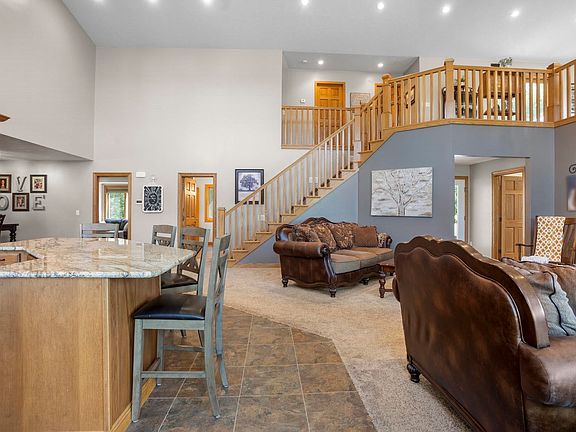 Serenity meets Easy Entertaining with this gorgeous 4 Bed, 3 Bath home located within the Evergreen Subdivision of the tranquil Robinwood Estates! With curb appeal flaunting its lush landscaping and immaculate care, it is the perfect welcoming invitation to all! Inside offers a grand, open concept featuring elevated ceilings and abundant natural light! The kitchen boasts granite countertops, stainless steel appliances and an elongated island, perfect for entertaining! Alongside the kitchen features the formal dining room and convenient access to the 2 car garage and nearby mudroom! The family room draws you in with its beautifully detailed, stone fireplace creating the perfect centerpiece for the home! The primary bedroom is its own retreat with patio access, sleek tiled bathroom along with a spacious walk-in closet! Rounding out the main floor is 2 additional bedrooms featuring a Jack and Jill bathroom! Continuing upstairs you’ll find a loft area equipped with the home's 2nd fireplace and access to the upper deck where you can take in the overhead views of your private oasis! There’s also a ¾ bath, the home's 4th bedroom along with a bonus room; the perfect nook for storage or crafts! Downstairs provides an additional family room and a generous laundry closet. The backyard is sure to make a splash with its 13’x23’ underground heated pool and oversized brick patio, ensuring you can make the most of our long, ND summer nights! Being nestled alongside the Vardon Golf Club along with nearby walking trails and a quick jaunt into Minot, this home provides you the luxury of easy entertaining and allows you to enjoy all the serenity the neighborhood has to offer!