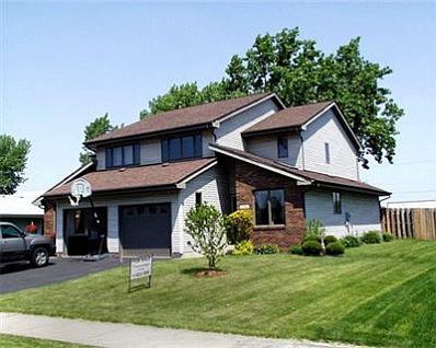 Tile in kitchen - Hardwood in living room and carpeting is new. Recently painted 05/07. New garage door and screen door.