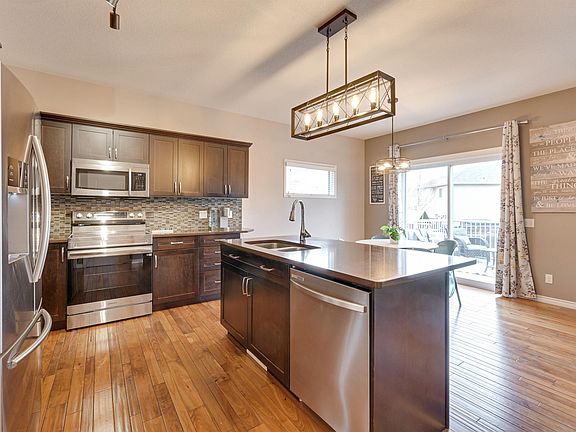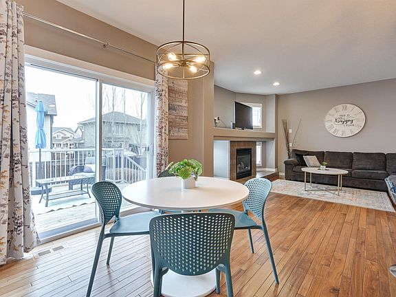 Welcome to this beautiful 4 bed + 4 bath home in Chappelle Gardens! Thoughtful upgrades make it turn-key + ready for your family. Your spacious kitchen features an oversized island + updated appliances! Your bright living room is cozy + comfortable thanks to your new fireplace. Cozy carpet leads you upstairs to the primary bedroom complete w/ a walk-in closet, ensuite, + blackout custom blinds, along w/ 2 additional bedrooms. The fully finished basement provides more living space w/ a bonus room, great for a home gym or flex space. A fully fenced backyard w/ upgraded landscaping + a larger-than-standard deck is perfect for outdoor entertaining. Enjoy A/C in the summer months + a heated double garage w/ dimmable pot lighting during winter! Rest assured w/ keyless entry, new interior paint + garage paint, custom blinds + new main floor lighting! Ice skating, a splash park, schools, trails, + daycares are nearby. Your HOA puts on fun holiday parties for all residents! Don't miss the chance to call this home!