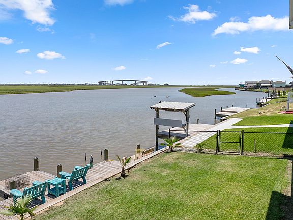 Exceptional waterfront retreat on Old Caney with panoramic views of the Gulf and barge traffic along the ICW. Excellent location! Upstairs features 3 bedrooms, 2 baths, a split floor plan, and open-concept living that seamlessly connects to a covered porch, perfect for catching coastal breezes. The private pier offers direct access for boating, fishing, kayaking or simply enjoying the water. Downstairs, a well-appointed guest suite with full kitchen and bath provides comfort and privacy. Relax in the hot tub, soak in the views, and enjoy ample storage for all your coastal essentials! Recent upgrades: new 18 SEER HVAC, interior/exterior paint, solar screens, and updated siding! Adjacent RV ready lot is also available for sale MLS 21369415!
