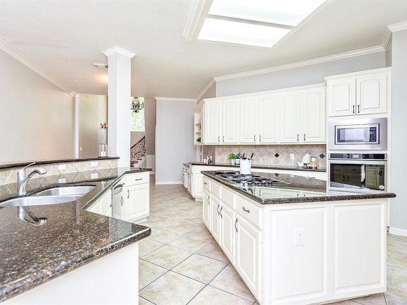 VIEW HOME VIRTUALLY ON ATTACHED LINK! **Impressive home in highly sought after New Territory with a heated pool + hot tub! UPDATES: Fencing replaced (2020); Oven/Microwave (2019); Dishwasher (2018); HVAC units (2017-18); Pool Heater (2017). You'll love the light & bright open concept floorplan - kitchen open to the living & offering granite countertops, stainless steel appliances, island with gas cooktop + more! The spacious living room features a cozy fireplace & wall of windows w/ great views of the pool. Enjoy a breakfast area + an elegant formal dining room. Nestled at the front of the home is a private study/office with a built-in bookcase & French doors. Retreat to the spacious primary suite with a bath w/ dual sink vanities, whirlpool tub, frameless shower + a spacious walk-in closet. Downstairs w/ full bath + half bath. The upstairs offers a huge game room w/desk area, a half bath + two secondary bedrooms & Jack & Jill bath. Must see!