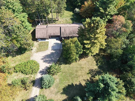 Year around home in a private setting. 3-bedroom, 2-bath with vaulted living room ceiling and gas fireplace. Three solar tube skylights bring natural light into darker areas. Attached 2-car garage with an additional garage/workspace. The unfinished basement had extra wall insulation and has a tall ceiling, giving it a spacious feel. The 5.4 acre lot is wooded with trails, and a fenced area for a garden or your furry friends. This great location has access to all the Northwoods lakes and recreation opportunities!
