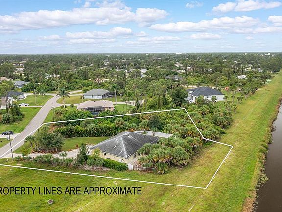 One or more photo(s) has been virtually staged. Experience the best of Florida living with this beautifully maintained 3-bedroom, 2-bathroom canal-front home on over half an acre of lush, tropical property in North Port. Surrounded by vibrant new landscaping and gardens completed in 2024, this home offers a rare blend of privacy, space, and natural beauty. A new fence, fresh walkways, and oversized lot create a peaceful retreat that feels like your own private oasis. The property has been thoughtfully designed for year-round enjoyment with mature palms, flowering plants, and well-tended garden spaces. The long private driveway offers plenty of room for vehicles, an RV, or a boat, and leads to an oversized two-car garage with side entry and a 12-foot storage shed for added convenience. Built with quality in mind, the home features impact-rated windows and doors, Hardie Board cement siding, and a top-of-the-line Trane air conditioning system for comfort and efficiency. Inside, the layout is bright and open with cathedral ceilings and neutral tile flooring throughout. The spacious great room flows seamlessly through French doors to a large covered and screened lanai. The kitchen offers solid wood cabinetry, a generous walk-in pantry with electrical access, and a cozy breakfast nook filled with natural light and views of the garden. The primary suite serves as a relaxing retreat with tray ceilings, a large walk-in closet, and a private bath featuring dual sinks and a no-step walk-in shower. The split-bedroom design provides privacy for guests, and one of the additional bedrooms opens directly to the lanai. Outside, the property invites you to enjoy kayaking, fishing, or simply watching the local wildlife from your backyard. Every detail of the landscaping has been planned for beauty, privacy, and easy maintenance. Located in a quiet, well-kept neighborhood, this home combines tranquility with convenience, offering easy access to Warm Mineral Springs, Myakkahatchee Creek Environmental Park, CoolToday Park, and nearby Gulf Coast beaches. **THIS PROPERTY QUALIFIES FOR A 1% LENDER INCENTIVE IF USING PREFERRED LENDER. INQUIRE FOR MORE DETAILS.**