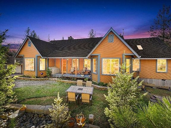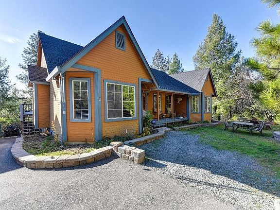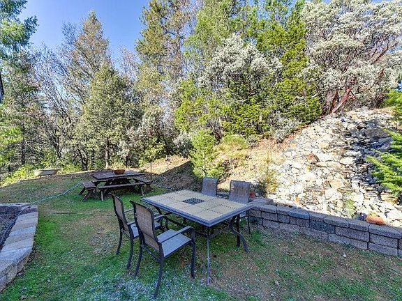 Tucked back off the road for privacy & some potential nice views with some more clearing. Nice 3bd 2 ba home w/vaulted ceilings, sky lights, beautiful rock fireplace, large soaking tub in the master bath and a tastefully updated kitchen are just a few great features of this home. Enjoy relaxing on the rear deck in the spa or sit in the front yard and watch the birds and enjoy the sound of the awesome waterfall. Detached garage w/workshop, garden & a chicken coop..what are you waiting for?