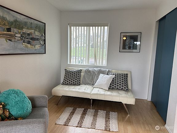 Located in the popular Uptown Area of Port Townsend is this cozy condo with balcony overlooking beautiful Kai Tai Lagoon, Manresa Castle and the Olympic Mountains. Primary home, getaway, or warm winter space while you work on your boat. This 295 sq ft home has new appliances: washer/dryer, refrigerator, and a range with self-cleaning oven. Newly remodeled bathroom and living space. End unit- no neighbor on one side or below. Park in front of steps- only 8 steps. Walking distance of the farmer’s market, co-op, library, theatre, the Port and much more. On the free bus line too. A must see!