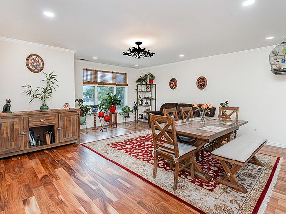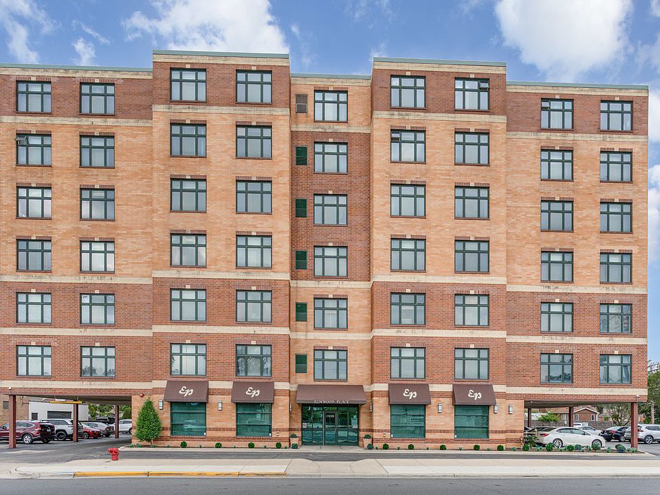 Charm and style abound in this graciously appointed 2 bed / 2 bath corner unit condo, featuring the largest floorplan in the building that has been extensively updated in 2023. Large windows fill the home with natural light, while Acacia hardwood flooring and decorative wall panels create a warm, modern feel. The Mediterranean-inspired kitchen blends rustic charm with modern convenience. It includes bespoke millwork, built-ins, high-end stainless-steel appliances, refreshed cabinets, a striking tile backsplash, granite counters, and a versatile L-shaped prep area. The open dining and living space is enhanced by crown molding for an elegant touch. The primary suite offers a walk-in closet and spa-style bathroom with double vanity, soaking tub, and separate shower. The second bedroom is generously sized and served by a full hallway bath. The laundry room was rebuilt in 2023, now featuring a sink, shelving, and a smart washer/dryer. Other recent updates include fresh paint, new lighting, and upgraded finishes throughout. Practical perks include two assigned parking spaces (one covered and conveniently located near the entrance), a private storage unit, and excellent sound insulation with concrete floors and walls. Building amenities include a newly renovated reception area, secure entry with intercom, elevator, party room, and plans for a fitness center. The building is pet-friendly and allows long-term rentals. Located within walking distance of the commuter bus and Metra close by, with Starbucks just across the street, this home offers suburban comfort with city convenience.