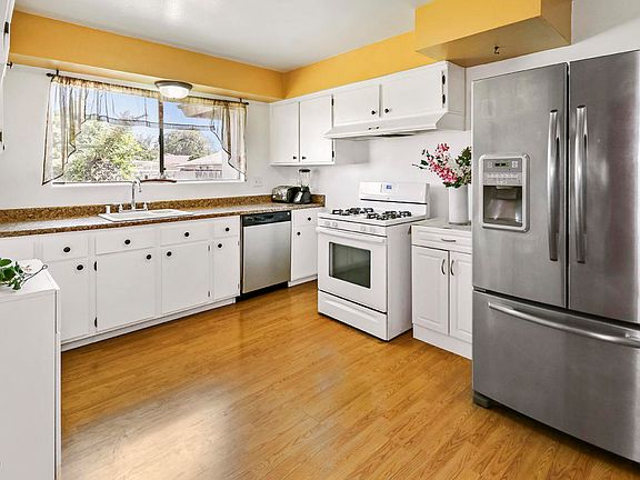 Single story entry level starter home in the great part of Oxnard.Light bright, bamboo flooring throughout, crown molding,3 bedroom 2 bathrooms 1,634sq ft.Eat in kitchen. Living room has wood burning tile fireplace, that looks out into the private patio and grass area. Bathrooms have tile floors and showers . Master suite has wood flooring and adjoining master bath with a sunken Jacuzzi tub. This home is in walking distance to schools and shopping. This house wont last long!!