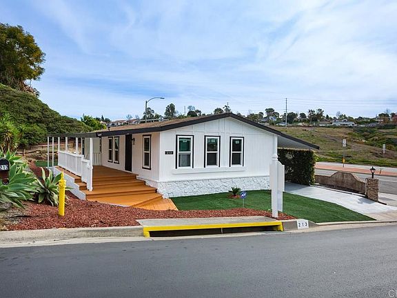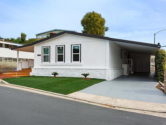 Beautiful renovated 2 bed 2 bath home Located in a highly desirable neighborhood with resort style living, Palomar Estates West is a 55 plus community centrally located near shopping and dining on the border of San Marcos and Carlsbad. This home features a wonderful open floor plan, a center island, shaker cabinets, quartz counter tops, stainless steel appliances, and a single basin stainless steel sink, updated bathrooms, vinyl plank flooring, new dual-pane windows, vaulted ceiling in the living room, kitchen, and dinning room gives you an even more spacious feel to the home. No detail has been forgotten. Palomar Estates West is a 55+/35+ senior rent controlled park with many amenities including a beautiful clubhouse, pool, spa, gym, putting green, pickleball courts, and tennis courts. This home is located minutes to Lake San Marcos dining and golf as well as local Carlsbad beaches, shopping, and restaurants. Priced to sell, don't wait!