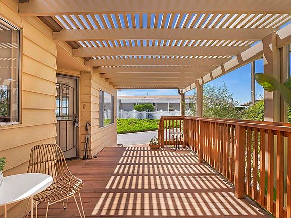 West-facing 2BR/2BA home in 55+ Palomar Estates West with OCEAN VIEWS and refreshing coastal breezes! This spacious home features two large living areas, vinyl wood-like flooring, and a roomy primary suite with dual closets and direct access to a private backyard. Enjoy a large front porch, beautifully landscaped yard, and abundant natural light throughout. Upgrades include a new hot water heater, new furnace, new stackable washer/dryer, and a large shed with built-in laundry area. HVAC systems are on a service plan for added peace of mind. Resort-style community amenities include pool, spa, clubhouse, fitness center, and more—located just minutes from shopping, dining, and the beach!