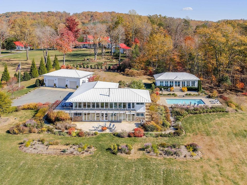 Experience luxurious country living with this stunning contemporary estate in Madison, offering panoramic views of the Blue Ridge Mountains and frontage along the Rapidan River. Set on 24 beautifully landscaped acres, this property combines modern comfort with natural beauty. In 2021, a charming two-bedroom, one bath guest house and heated salt water pool with fire pit were added, creating the perfect retreat for entertaining or relaxing. The main residence was completely renovated in 2022, featuring a gourmet kitchen with Wolf range gas oven and a cozy seating area and fireplace, a main-level primary suite, and breathtaking views from every room. Enjoy manicured year-round gardens that ensure something is always in bloom, and a three-car garage with space for large vehicles. With Walkers Mill Road currently being paved, this exceptional property offers easy access while maintaining the serenity of its private setting—an ideal blend of contemporary luxury and country charm.