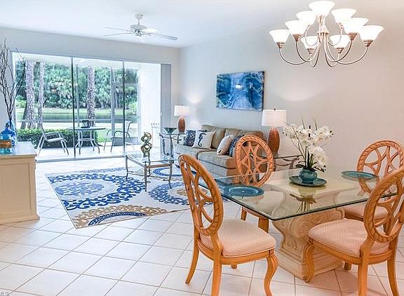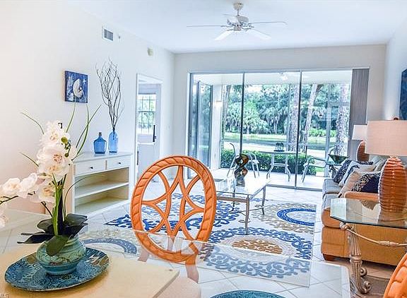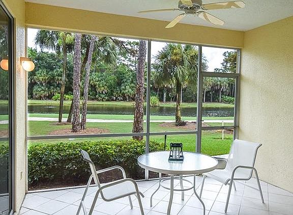 Naples lifestyle is all about year around golfing, sun bathing or swimming in the gulf, shopping, socializing, and more. Start a new life in Stonebridge, in this bright ground-floor 2Bed/2Bath immaculate and very well maintained condo, tastefully Turnkey furnished. The diagonal tile throughout the living area, foyer, and bathrooms; newer carpet in bedrooms. Detached extra storage. Enjoy expansive views overlooking the Stonebridge golf course and a lake from the screened lanai. The unit is just steps from the neighborhood pool, bike rack, covered carport, guest parking, club & tennis courts. The air conditioning system was replaced in 2011, a new water heater was installed in 2012, as well as new granite countertop, stainless steel dishwasher, microwave, stove, and refrigerator in 2016. The Stonebridge community offers full golf, tennis and fitness club membership, included with the purchase of the home; golf membership is transferable to renter. Newly renovated Clubhouse! Live the Naples lifestyle to the fullest in this sought after community offering all the social activities and amenities Prime location just minutes to the Naples white sand beaches, shopping and fine dining.