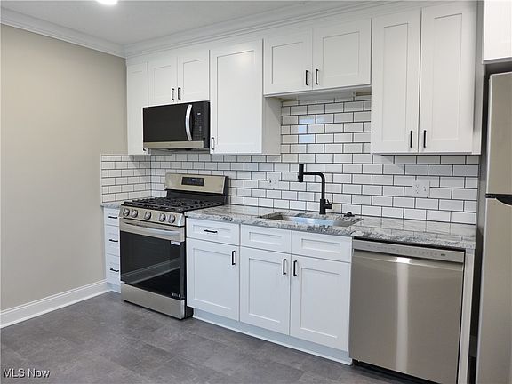 ** MULTIPLE OFFERS -- Highest and Best due by Sunday, May 25 at 11:00 PM ** Welcome to the home you have been waiting for! This beautifully updated 3 Bedroom ranch is clean and move-in ready. New kitchen with white cabinetry, granite counters, subway tile backsplash, luxury vinyl tile floor and new stainless steel appliances. The living room is enhanced by a large picture window, crown molding, LED lighting and refinished hardwood floors, creating a warm and inviting atmosphere. All three bedrooms include crown molding, hardwood floors and ceiling fans for added comfort. Updated bathroom with a ceramic tile floor and shower surround. A finished basement with glass block windows, provides additional space for relaxation or entertainment. Fenced-in yard with a 2 car detached garage. This home is truly move-in ready, featuring a newer roof, driveway, high-efficiency furnace, A/C, kitchen, bathroom, water heater, complete trim package, interior doors, fixtures, faucets and garage door with opener. New neutral paint and flooring throughout. Great location with quick and easy access to highways, shopping and Metroparks. Don’t miss your chance to make this home yours—call today to schedule a showing!