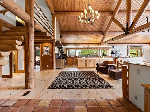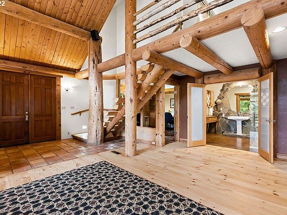 A one-of-a-kind lodge style home & PNW oasis! The craftsmanship & quality of materials make this home irreplaceable for generations to come. The size & quantity of solid, old growth wood beams is jaw dropping. Featuring new grand kitchen island w/ quartz, professional range, new primary spa-like bathroom, GIANT vault, HUGE windows, AMAZING river rock fireplace, refinished wood floors, mature landscaping, 12' waterfall, large decks & patio, fire pit, dog kennel and oversized three bay pole barn.
