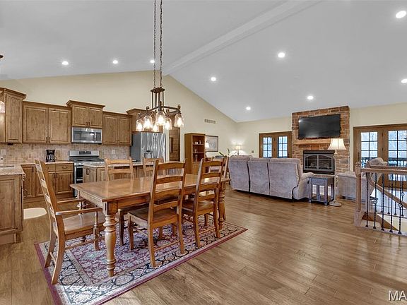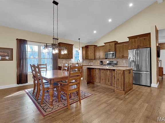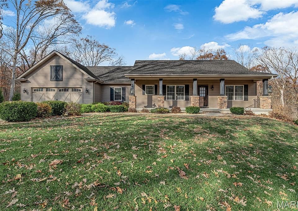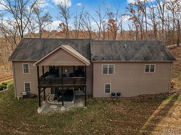 Wooded 5 Acre St Louis County Wildwood property with custom, 2900 SqFt, 2014 built home including 4 bed 3 bath 2 car garage and walk out lower level. Enter great room with engineered wood floors, recessed lighting, vaulted ceiling open to kitchen, dining and living room. Living room is centered by stone fireplace flanked by two sets of French doors opening out to large covered deck, with grand views into forest. Spacious kitchen includes stainless appliances, granite countertops and a large center-island. Ample kitchen pantry and laundry on the main. Primary bedroom suite boasts vaulted ceiling and fabulous primary bathroom. Split bedroom floorplan, means 2 additional bedrooms and full hall bath are on the opposite side of the main level from primary. Lower level is partially finished 9’ pour with additional great room, small bar area, bedroom, bathroom, abundant storage with walk out and private hot tub area. Decor is neutral with barn wood accent walls and other stylish details. Picturesque in every direction. Seller would be grateful for offers to arrive before Sunday 11/23/2025 at 8PM, not to expire before Monday 11/24/2025 at 8PM.