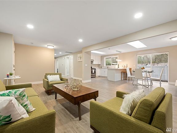 Beautifully updated home in highly-desired Kenmore community. Open concept living room with oversized new window, overlooking private yard. Dining area with skylight, opens to breakfast bar. Modern gallery kitchen with custom cabinets, quartz countertop & SS appliances. Spacious family room with French doors out to yard. Quiet master bedroom suite, 3 great sized guest rooms with lots of natural lights. Completely updated bathrooms, beautiful new flooring all through, new interior and exterior paintings, doors, windows, etc. Huge laundry n storage. Fully fenced yard with new lawn & garden space. Northshore schools. Minutes to Lake, parks, and all Kenmore & Bothell amenities, easy access to 522, I-5, I-405. 1 year Home Warranty! Welcome home!