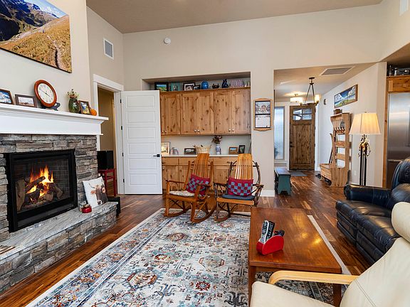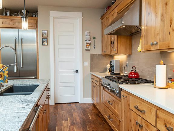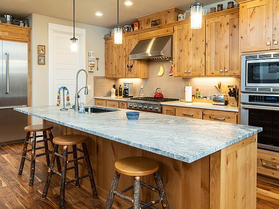 Beautiful SINGLE LEVEL home in Tetherow offering the perfect balance of both Mountain & Modern finishes. With 3 bedrooms plus a den & 3-car garage, this home was thoughtfully designed for an effortless flow, from the gated front entry courtyard to the covered back patio. Open great room w/ soaring ceilings, acacia wood flooring, stacked rock fireplace, custom dry-bar & cabinetry. Gourmet kitchen features top of the line Thermador appliances, leathered granite prep-island/breakfast bar, quartz counters & large walk-in pantry. Gas fireplace makes for a warm & cozy owner's suite, w/ spa-like bath inc. heated floors, huge walk-in shower, under-counter lighting, dual sinks & private water-closet. Centrally located den is the perfect at home office or virtual classroom, while the 3rd bedroom could also easily be an additional office w/ the added benefit of private entry, accessible from the front courtyard. 3-car tandem garage w/ built-in cabinetry & storage racks. Landscape maint. prov
