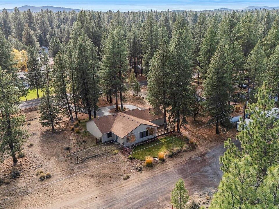 Discover this unassuming, impeccably clean single-level home in SW Bend, nestled among towering pine trees on a spacious lot. Short-term rental eligible, it's perfect for investors or homeowners seeking tranquility just 10 minutes from downtown. Inside, enjoy a thoughtful layout with brand new carpet throughout. Two inviting living rooms feature vaulted ceilings—one featuring hardwood oak floors. Set back from the road with a circular asphalt driveway, there's ample room for RV/toys parking. On the side of the home sits a garden area, and a freshly stained deck sits out back for outdoor gatherings and enjoyment. The garage includes built-in cabinets for organized storage.