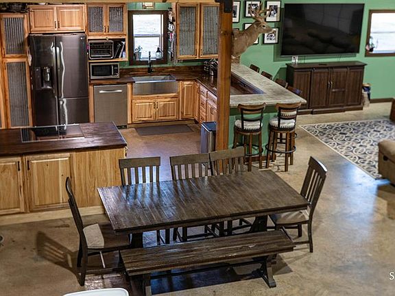 At the heart of the property stands a spacious 2,000 sq ft barndominium, featuring 2 bedrooms, 1 bathroom, and a full kitchen. This comfortable living space is equipped with luxurious amenities, including a tankless water heater and thermogenic floors for year-round comfort. For added security and peace of mind, the barndominium includes a built-in safe room. The ranch's infrastructure is further bolstered by three water wells, ensuring a reliable water source for domestic use, livestock, and irrigation needs.