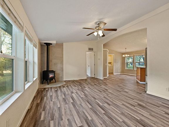 Welcome to this charming 3-bedroom, 2-bathroom home located in the Pine Mountain Lake community near the historic town of Groveland, 25miles from Yosemite National Park. This manufactured home and detached 2 car garage with a workshop were built in 2007 and are on an oversized 0.6A2AC lot. With 1,296 square feet of living space all on one level, this residence offers a cozy and functional layout. The kitchen is well-equipped and conveniently adjoins the dining area. Living room and master bedroom features durable LVP/laminate flooring providing a modern touch and easy maintenance. The living area is warmed by a newly installed wood burning stove, adding to the home's inviting atmosphere. Home has dual pane energy efficient windows, thick 2x6 walls and plenty of insulation for comfort during any time of the year. The exterior siding is made out of a fiber cement material that does not burn or rot. The home has central heat and window A/C. Home has an inside laundry area and washer and dryer are included. Garage is approximately 19ft deep and 20ft wide on the inside and the work/shop/hobby room is approximately 19x9. The home in general is move in ready and is in very good condition. It can be great for full time living, 2nd home or a vacation rental. Come check it out!