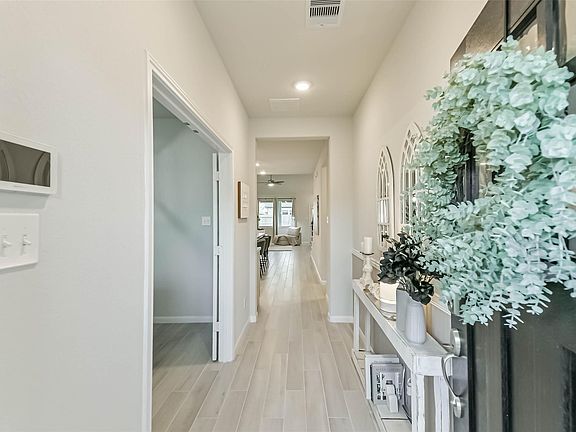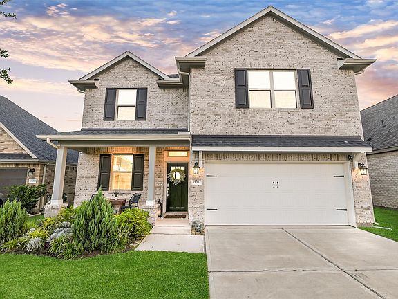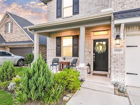 Come be amazed by 19307 Hillside Pasture. This light, bright, 4 bed, 3.5 bath Beazer home in Amira is full of custom touches. Mature landscaping and wide front porch add front curb appeal. Inside, accent walls, custom cabinets, and floating shelves elevate this home above the standard. Light wood look tile covers all of the main rooms. A study with French doors boasts stunning accents and lighting, also an optional formal dining. With quartz counters, island with seating, pendant lights, custom cabinets, undercabinet lighting, and walk-in pantry, this kitchen is a cook's dream. Vaulted ceilings highlight the spacious living room, which looks to a backyard with covered porch, expanded patio, and storage shed. The primary bedroom with its gorgeous accent wall and long window seat adjoins a bath with generous soaking tub, separate shower, double sinks, and huge closet. Upstairs are three more large bedrooms, two baths - one an ensuite, and a game room complete this home. Come tour today!