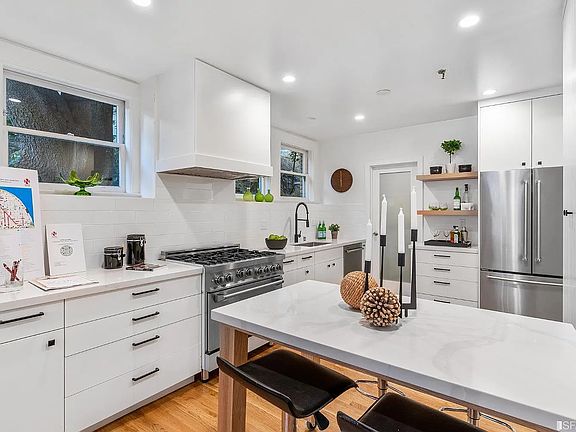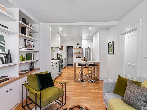 Sophisticated Russian Hill Flat at Jones St. & Macondray Ln. This flat offers a beautifully redesigned flat with windows on three sides for exceptional natural light and lush, green outlooks. This thoughtfully remodeled home combines modern sophistication with classic San Francisco charm. Featuring a flexible open floor plan with a chef's kitchen complete with a custom mobile island, 9-foot ceilings, hardwood floors, professional-grade stove, dishwasher, and custom built-ins. The stylish powder room, in-unit washer and dryer, and excellent closet space provide both form and function. Enjoy a brand-new main bathroom with heated floors and a heated towel rack, plus custom-made closets throughout. Two sunny rear bedrooms and a versatile third room off the hallway perfect for a home office, guest room, or gaming lounge complete the layout. Additional perks include a huge private storage room (just one flight down) with second fridge; ideal for skis, golf clubs, or anything your city life requires. From the kitchen, take in the green outlooks of Macondray Lane; enjoy morning sun in the front living area and afternoon sun in the bedrooms. Top it off with access to a shared roof deck showcasing incredible Bay views the ultimate San Francisco experience. All this, just steps from Hyde Street cafes, Polk Street restaurants and shops, North Beach nightlife, the Financial District, Chinatown, and Francisco Park. With the 45 and 12 bus lines right nearby, convenience doesn't get better than this