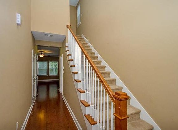 You will love this quality-built, energy efficient home with fantastic open floor plan in beautiful Kensey Park at award winning Canterbury Farms Subdivision! This home features upgraded hardwood flooring and extra trim work downstairs, stained kitchen cabinets, cultured marble and raised vanities, custom owner's closet with binds, and tile in owner's bathroom. The kitchen has lots of cabinets, a generous countertop, and a separate pantry. The owner's suite boasts a huge closet, double bathroom sinks, a garden tub, and separate shower. The upstairs also has 2 additional bedrooms, a full bathroom, and the laundry area. Other features include a double garage, vinyl and brick exterior, and a wooded lot in the rear that provides lots of privacy yet is close to the neighborhood pool. Close to I-20, Fort Gordon, and shopping.