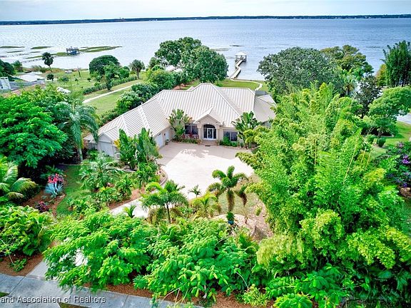 Welcome to your dream home on Sebring’s premier lake, Lake Jackson! Perfectly situated on a full acre with 125 feet of pristine lake frontage, this 4-bedroom (plus office), 2.5-bath home offers luxury, comfort, and one of the best locations in town. Enjoy being within walking distance to historic downtown Sebring, recently featured on HGTV’s Home Town Takeover, where you’ll find charming shops, restaurants, nearly weekly festivals, and a vibrant farmers market. From the moment you arrive, you’ll be captivated by this home’s stunning curb appeal and elegant design. Step inside the grand entryway and take in the details. 10’ ceilings throughout, decorative columns, and beautifully crafted tray ceilings. With both a formal living room and a spacious family room with gas fireplace, there’s plenty of room for entertaining and relaxation. The custom kitchen is a chef’s delight, featuring Corian countertops, custom cabinetry, newer stainless steel appliances, a cooktop island, and bar-top seating. Enjoy your morning coffee in the breakfast nook with panoramic bay windows overlooking your screened-in pool and the sparkling waters of Lake Jackson. The expansive master suite is a private retreat with large windows framing the lake views, a sliding door to the pool area, two walk-in closets with custom built-ins, and a luxurious master bath with dual vanities, a Jacuzzi tub, and a walk-in shower. Three additional bedrooms share a well-appointed guest bath, while a half bath off the main living area adds convenience. The office (or optional 5th bedroom) can easily be converted back to a formal dining room if desired. Additional highlights include an in-house laundry room with sink, cabinets, and storage space; screened pool area with covered patio; and a dock with covered boathouse and lift for easy lake access. Enjoy breathtaking west-facing sunsets over the water each evening and stroll through your lush garden yard featuring fruit trees like mango, lychee, guava, coconut, banana, avocado, and more! Spend endless days soaking up the sun and making memories on Lake Jackson! Recent updates provide peace of mind: 2019 roof, 2021 A/C, new gas water heater with solar backup, new pool pump, and fresh interior and exterior paint. A two-car garage completes this incredible lakefront package. Experience the best of Sebring living! Relaxation, recreation, and small-town charm all from your own backyard on Lake Jackson!