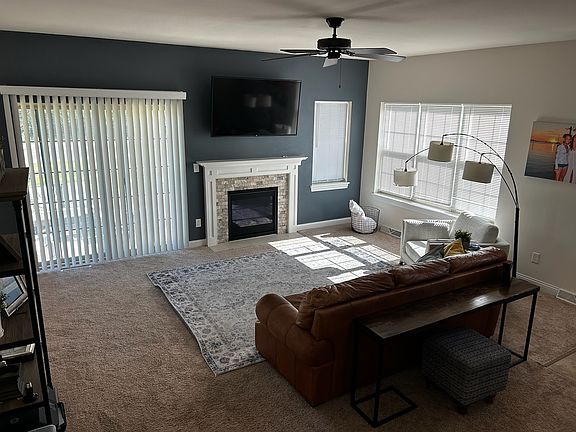 Ranch style condo with a finished basement. 3br, 3bath, 2 car garage. Open floor plan with 9 foot ceilings, all white woodwork, gas fireplace in livingroom. Kitchen with snack bar and dinette area. Includes Stainless steel appliances: stove, fridge, dw, microwave. Laundry room with washer and dryer included. Finished basement with a rec room, bedroom and a full bath. One year lease, dog ok with breed restrictions and $200 pet fee and $30/month pet rent. Cat ok with $100pet fee and $25/mo pet rent. Showing by appointment. one year lease Gas, electric, sewer and water are tenant responsibility. Lawn care and snow removal included