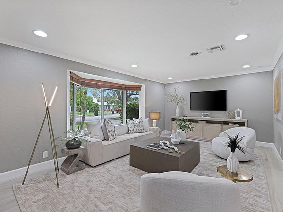 Exceptionally Luxurious One-Level Home with Outdoor Poolside Oasis! Idyllically nestled in the exclusive community of Lighthouse Point, this 3BR/2BA residence immediately captivates with ultra-lush tropical landscaping, custom half-circle paver driveway, 2018 roof, and a one-car garage. Step inside the immaculate interior to discover an organically flowing layout, gorgeous floors, soft natural light, spacious living room, and an upgraded gourmet kitchen with stainless-steel appliances and white shaker cabinetry. Truly fashioned for entertaining, the fully fenced-in backyard boasts a sparkling swimming pool, covered lanai, and an outdoor shower. Blissful relaxation may be enjoyed in the primary suite featuring a sumptuous en suite boasting a sleek step-in shower. Two extra bedrooms accommodate guests with sheer comfort. Affording unparalleled access to outstanding amenities, the home is only moments from parks, future epic Yacht Club, highly-rated restaurants, pickleball courts, and beaches. Even Whole Foods, Publix, and multiple gyms are literally a golf cart ride away. Come see today, and start living the good life in one of Florida's most coveted Coastal communities!