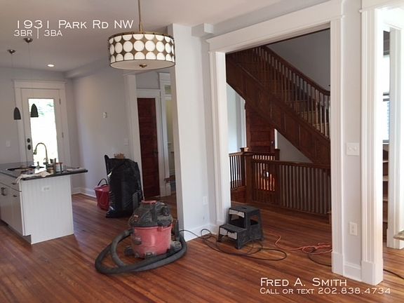 SCHEDULE A SHOWING ONLINE AT: showmojo.com/lh/8740c6d07d LOCATION: 1931 Park Road NW., Washington DC 20010 INTERIOR HIGHLIGHTS . Stunning top two floor duplex unit in beautiful location at the corner of Park & Klingle New kitchen granite island and countertops, all new high end Whirlpool appliances and solid maple cabinetry Kitchen opens onto massive newly constructed wood deck Mid-century designer chandelier and pendant lighting Two spacious bathrooms with skylight and stylish penny tiling and slate tile floor Original oak Arts & Craft staircase, heavy birch wood doors Closet America closet fixtures Light filtering top down bottom up blinds High end reading lights in master bedroom Carrier mini-split heat and air conditioning units in each bedroom LEASING INFORMATION Available NOW Online Rental Payments and Maintenance Requests Tenants pay Electric & Gas One off Street Parking Spot Professionally managed by: Fred A Smith Company 730 24th St NW Suite 19 Washington, DC 20037 202-337-5080