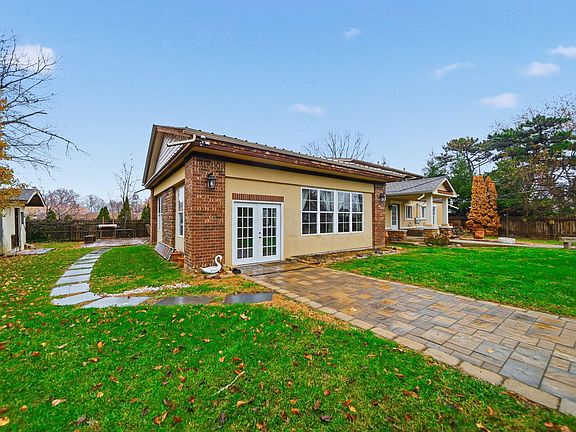 Additional office spaceRounded brick archwaysPrivacy fenceSpacious three-seasons roomTwo-car garageGenerous layoutUncovered parking space